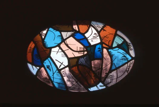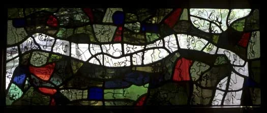 The etched pieces represent erosion and the passage of time. The mother of one of the couple in this household lost her entire family in the Holocaust, this window is a tribute to a now forgotten era.